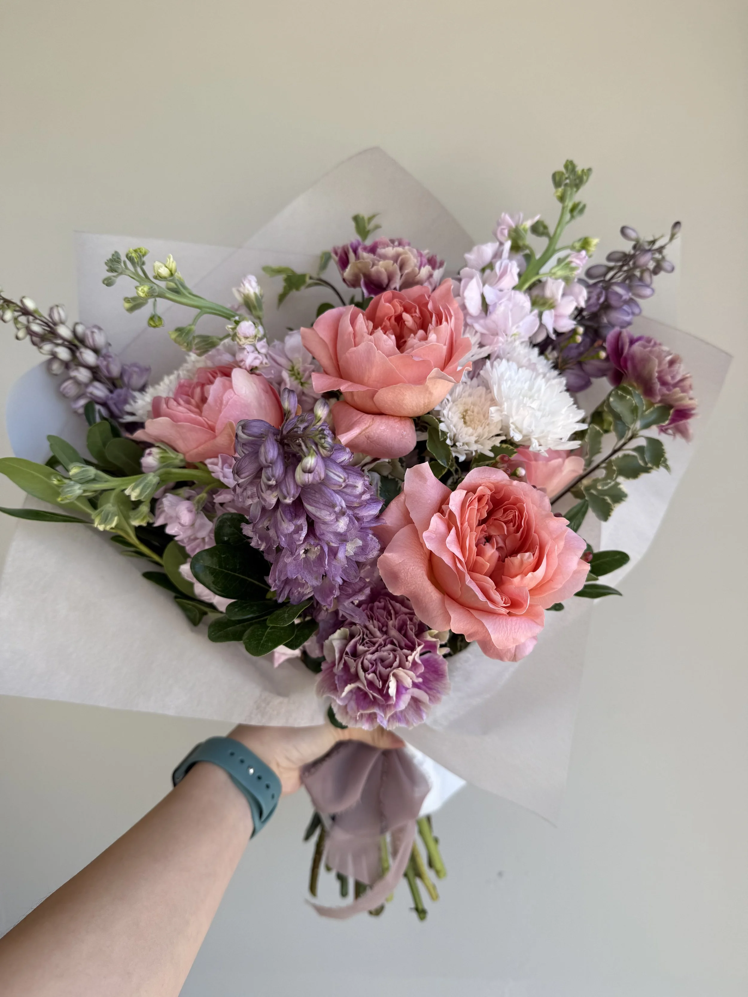 My love for florals came from my mom doing floral arrangements from home. Growing up I enjoyed watching her work with flowers for church, weddings, and other events. I always loved being able to learn and help my mom on occasion and just enjoyed everything about it. Now I enjoy doing it as a creative outlet to my job as a nurse!